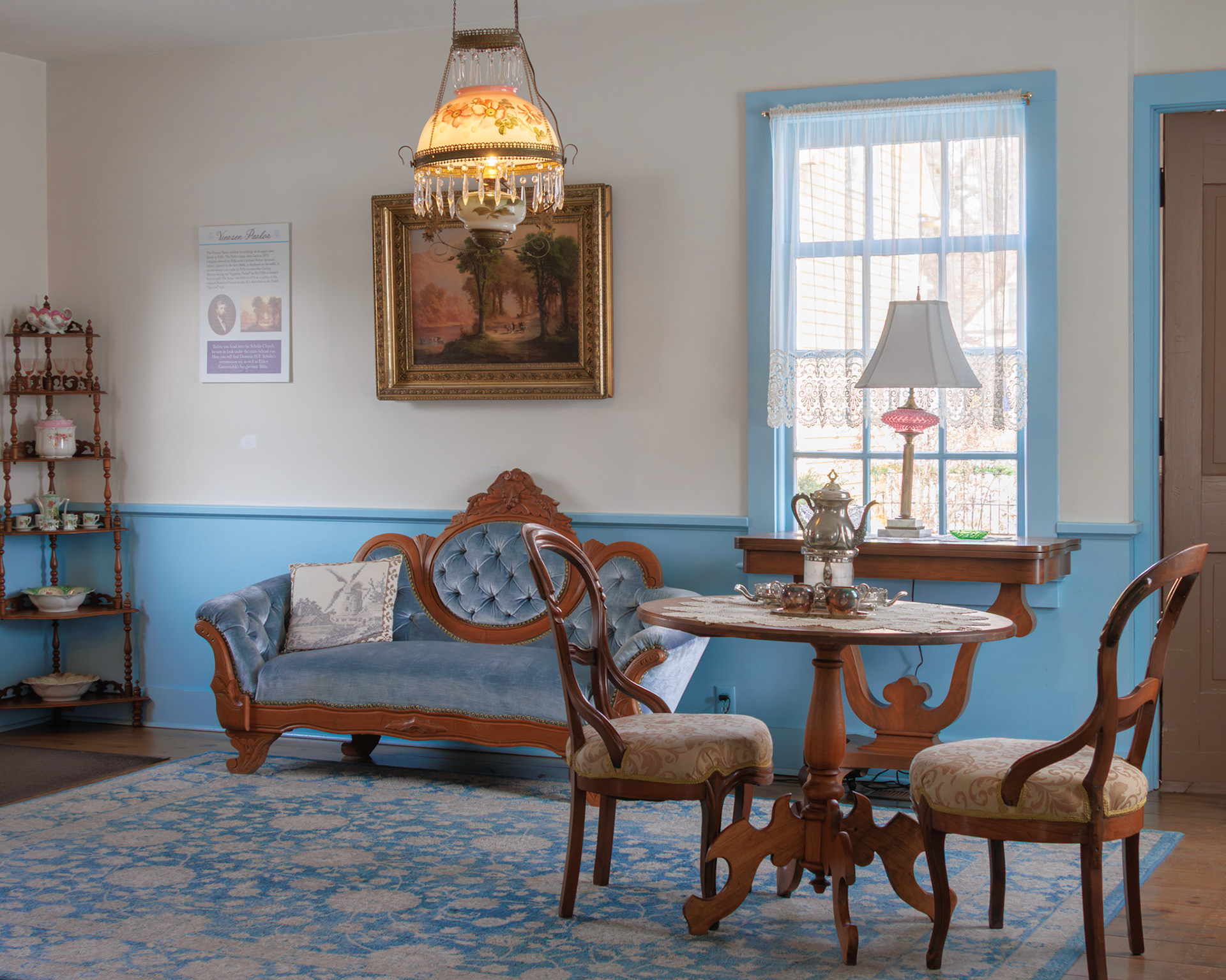 The Viersen Parlor is a restored Victorian‑era sitting room located within the Historical Village. Designed to reflect the style and atmosphere of a late‑19th‑century Dutch‑American home, it showcases period furnishings, decorative arts, and domestic details that illustrate how families of the time welcomed guests and spent their leisure hours.